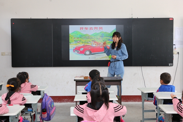“這套運動衫真好看。”“你看,我穿上不大不小。”“這個顏色我很喜歡。”……活動前,慰問助學人員第一時間為孩子們發(fā)放新衣服,接過新衣服的孩子個個樂開了花,迫不及待地開始試穿。隨后,慰問助學人員兵分兩路,一路與教學點唯一的教學老師細細交談,詳細了解孩子們的學習生活情況;一路和繪本館老師一起組織孩子們聽故事、做手工,和孩子們一起分享童趣與快樂。