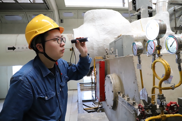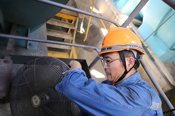 要問生產(chǎn)現(xiàn)場哪里可以免費“蒸桑拿”?相信高溫管道縱橫的汽機房一定是首選之地。發(fā)電部三值一控的唐智每個班都要巡視汽機側(cè),大到轉(zhuǎn)子聽音,小到表計參數(shù),他都認真查看記錄。“既然選擇了發(fā)電運行,就習慣了高溫和噪音,一想到家人們能在安靜的室內(nèi)吹著空調(diào),就沒那么吵沒那么熱了!”