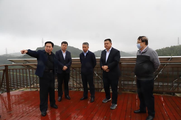 在新能源公司,袁總一行來到光伏組件區(qū),爬上山坡,展望光伏電站的全景,接著走入集控室,了解設(shè)備運(yùn)行狀況,邊看邊聽取了新能源公司關(guān)于光伏電站項(xiàng)目建設(shè)及安全生產(chǎn)情況的匯報(bào)。袁總對(duì)華中公司利用電廠基本廢置的灰壩建設(shè)光伏電站、有效盤活存量資產(chǎn),推動(dòng)綠色清潔能源發(fā)展表示肯定。針對(duì)新能源公司當(dāng)前安全生產(chǎn)工作,袁總強(qiáng)調(diào),要定期對(duì)灰壩壩體進(jìn)行檢測(cè),掌握壩體健康水平,及時(shí)消除安全隱患,防止發(fā)生潰壩和滑坡等嚴(yán)重事故,確保灰壩安全,同時(shí)要求進(jìn)一步完善光伏區(qū)排水系統(tǒng),確保排水通暢,防止雨季水淹組件和管涌現(xiàn)象的發(fā)生。