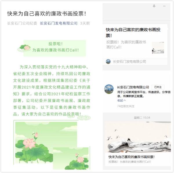 長安石門公司紀委開展2021年度廉政書畫作品征集評選活動