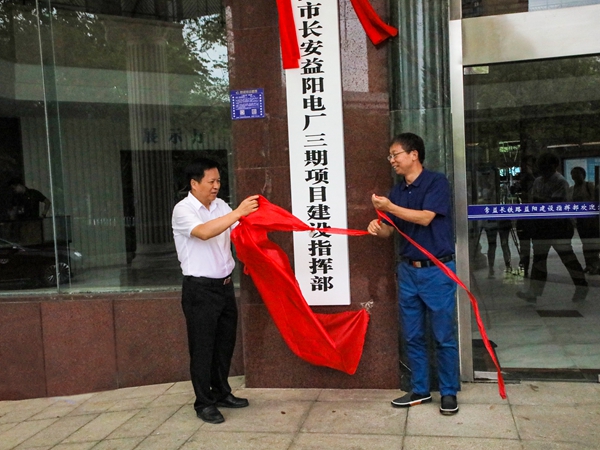 8月28日上午,益陽市長安益陽電廠三期項目建設指揮部揭牌成立儀式在錦源賓館隆重舉行。益陽市委常委、常務副市長、指揮部指揮長賀輝,益陽市人民政府副市長、指揮部副指揮長胡安邦共同為指揮部揭牌。益陽市政府相關領導、益陽公司領導班子成員出席揭牌儀式。