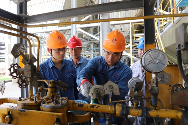 近40攝氏度的高溫下,來回奔走于庫房、集控室和缺陷現場,他們的工作服早已濕透。“我們的工作服每天都是干了又濕濕了又干,每天回家都能抖落半斤鹽巴!”他們一邊風趣的開著玩笑一邊飛快的走向下一個搶修點。