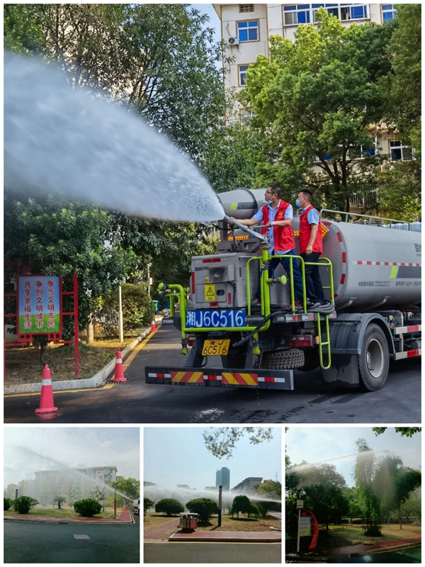 這次活動本著科學用水、節約用水、因地制宜的原則,采用高壓水車、管線接水等多種澆水措施,對生活區道路兩邊的綠化帶、草坪、花卉進行全面澆灌。該公司黨員們經過明確分工后,迅速地投入到“抗旱”工作中,他們有的負責用高壓水車上的水槍,澆灌高的樹木,有的負責用水管澆灌草坪,有的用自備的灑水壺澆花花草草,不一會兒大家的衣服、帽子都已濕透,個個臉上掛滿汗珠,滿臉通紅,即便這樣,也沒有一個人停下來,仍然頭頂烈日,腳踏熱浪,干勁十足。經過一小時的“奮戰”,整個生活區的綠植都掛滿了晶瑩剔透水珠,為居民帶來一抹綠色和清涼。