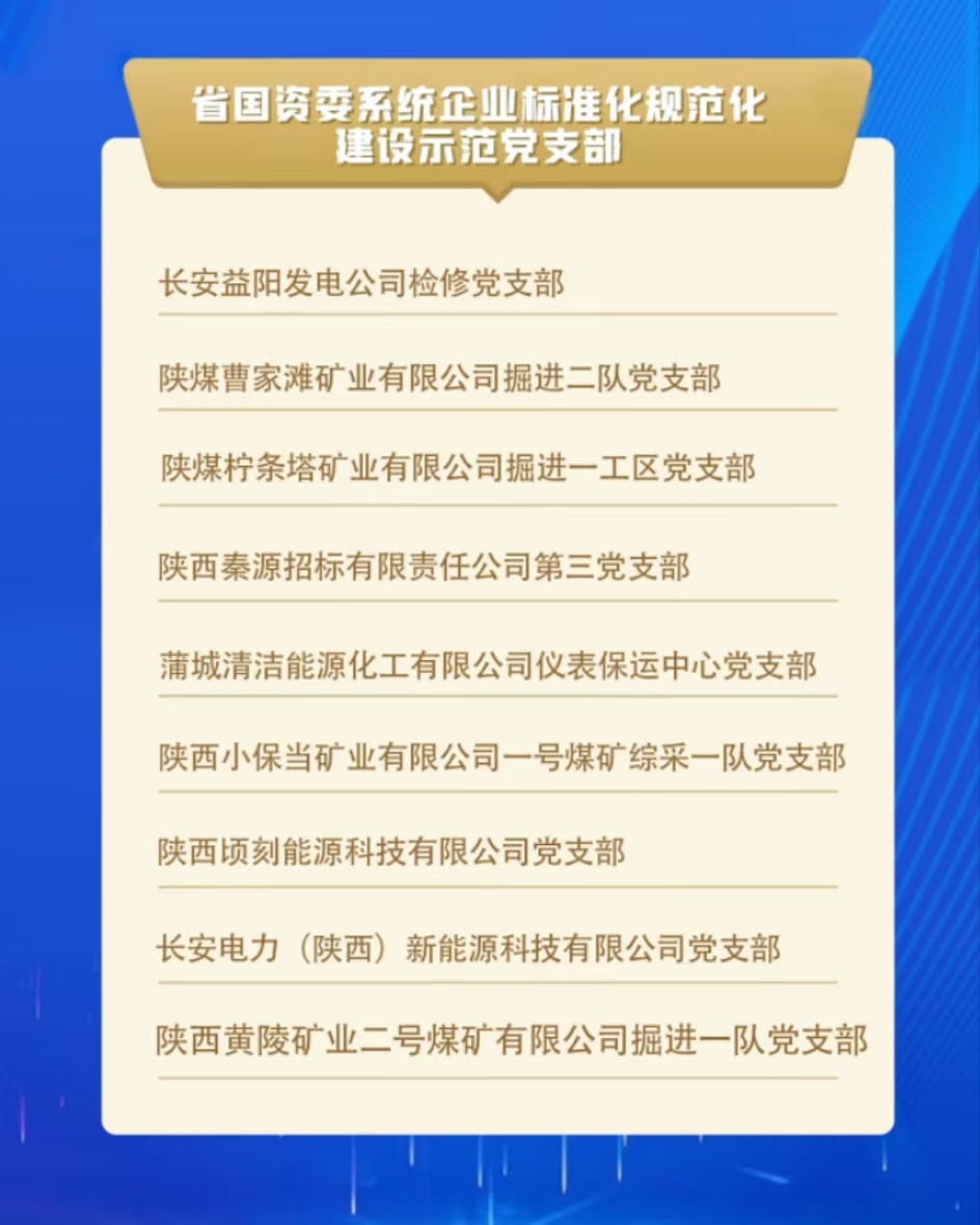 11月19日,陜西省國資委召開系統企業破解國企黨建“融入不深”暨黨支部標準化規范化建設經驗交流會。會上,長安益陽發電有限公司檢修黨支部獲評“陜西省國資委系統企業標準化規范化建設示范黨支部”榮譽稱號。