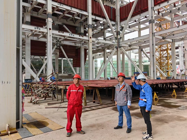 重點排查、強化現(xiàn)場管控。檢查組重點對五號、六號鍋爐區(qū)域、主廠房等關(guān)鍵施工部位開展全面排查,強化現(xiàn)場管控。在廣東火電承建的五號鍋爐區(qū)域,江建鋒親自測試塔吊制動性能,檢查防風裝置運行情況。他強調(diào):“每臺大型設(shè)備必須落實專人監(jiān)護制度,現(xiàn)場管理人員要實時掌握風速變化,達到6級風力必須立即停止作業(yè)。”