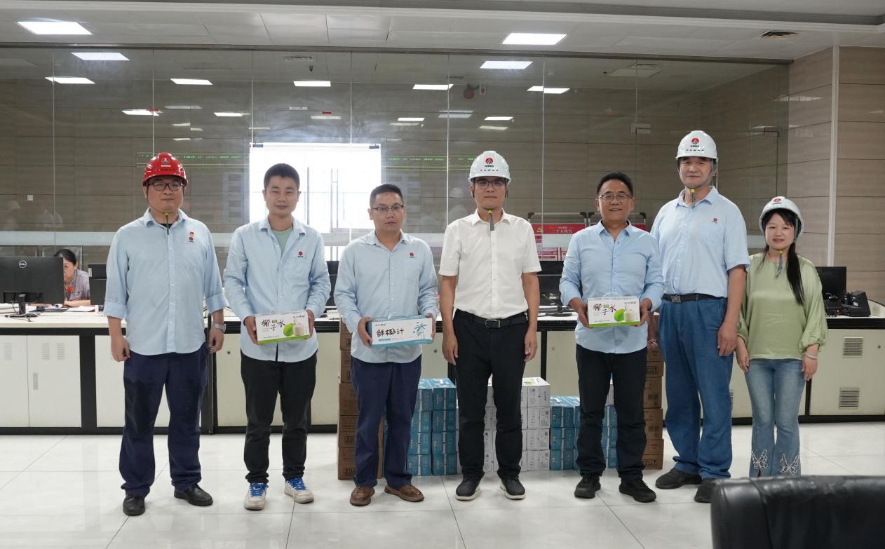在三期項目現場,嚴奉國帶著清涼問候而來,為一線建設者們遞上防暑降溫飲品,細心詢問大家的工作狀況。他特別強調要落實好防暑措施,科學安排作業時間,并叮囑現場人員:“高溫時段千萬注意,合理安排工作時間,安全第一!”